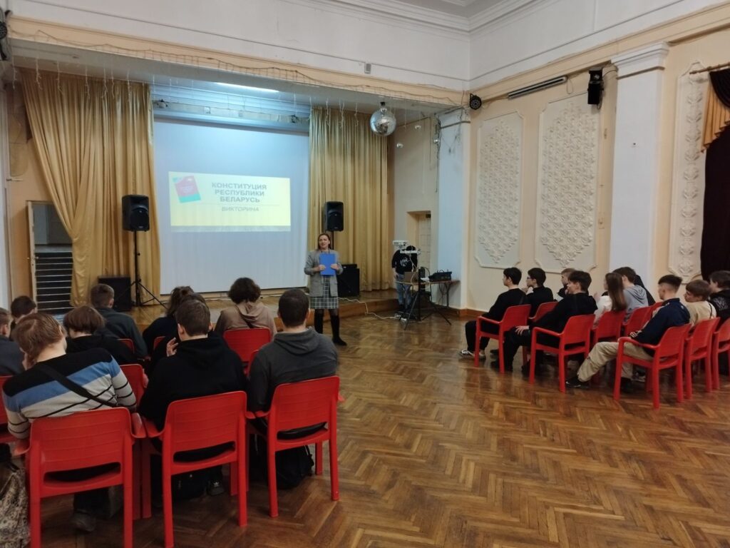 14.03.2024 учащиеся нашего колледжа приняли участие в квест игре (викторине) проводимой в ДК «Костюковка», приуроченной ко дню Конституции Республики Беларусь. Ребята отвечали на вопросы, тем самым подтвердили и закрепили свои знания о законодательстве нашего государства.