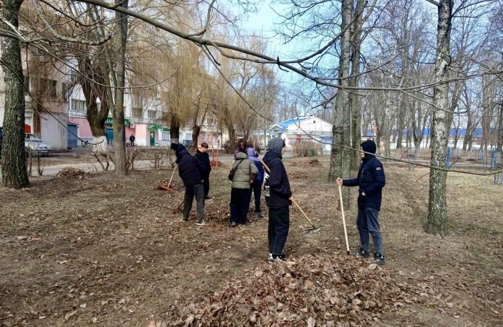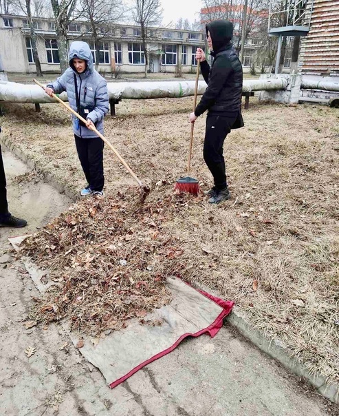 Сплоченная команда внесла свой вклад в создание чистоты на прилегающей территории.