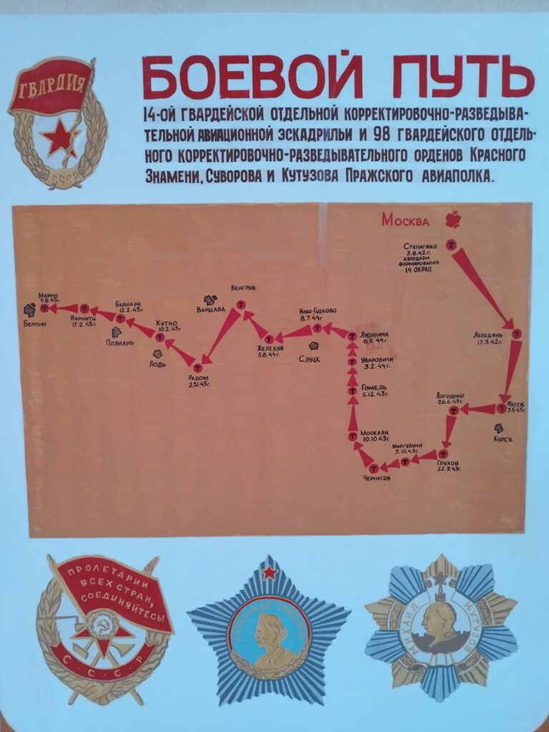 08.06.24 года в рамках 6-го дня учащиеся выпускной группы нашего колледжа посетили музейную комнату, где познакомились с боевым путем 14-ой отдельной корректировочно-разведовательной авиационной эскадрильи и 8 гвардейского отдельного корректировочно-разведовательного орденов Красного Знамени, Суворова и Кутузова, Пражского авиаполка в фотоэкспозициях. Ребятам показали обмундирование ветеранов вышеуказанных полков, их фотографии, детали боевой техники, рассказали славные страницы истории Героев.