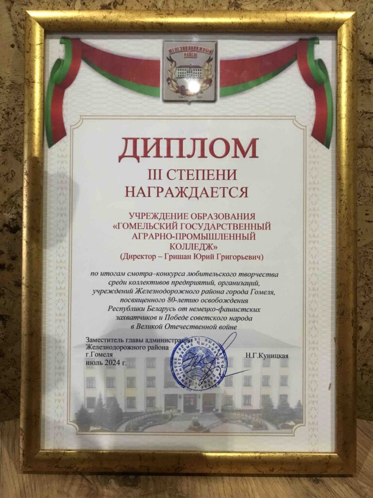 По итогам смотра конкурса художественной самодеятельности учреждений и предприятий Железнодорожного района наш колледж награждён дипломом 3 степени !!!