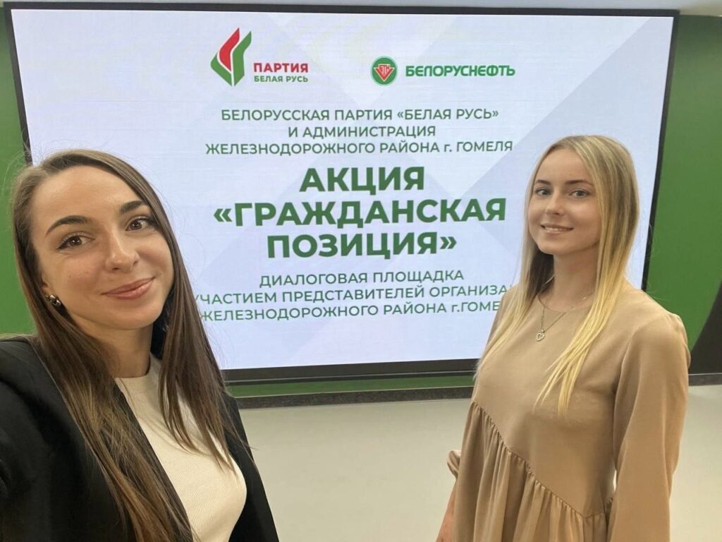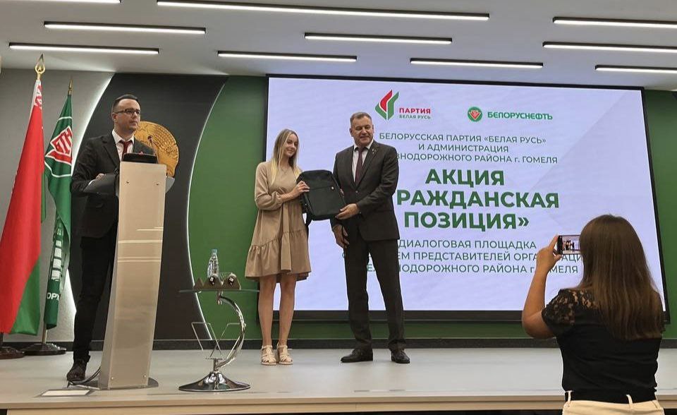 Сегодня в актовом зале центрального аппарата «Белоруснефти» состоялась акция «Гражданская позиция» Белорусской партии «Белая Русь», в которой приняла участие наш педагог-организатор Анна Тагай.