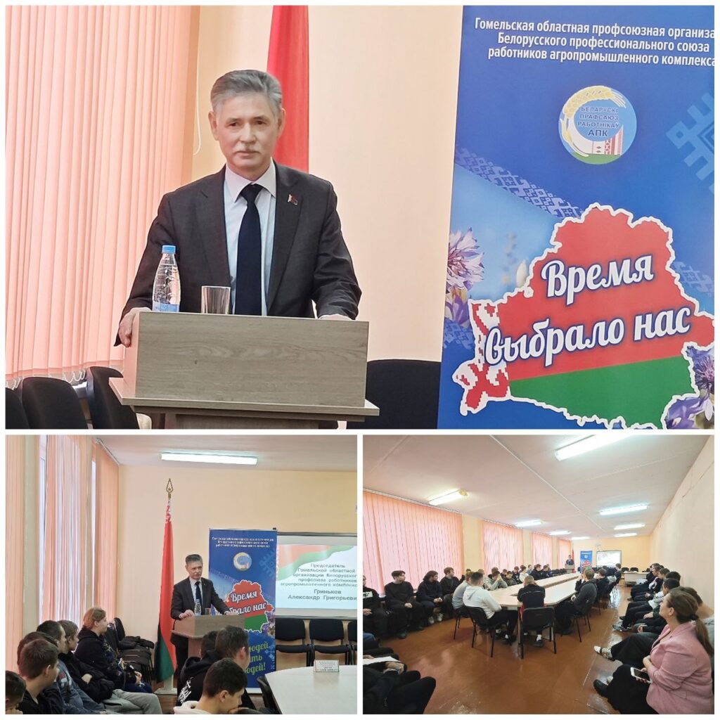👤Кроме того, в рамках Единого Дня Информирования в колледже была проведена встреча с председателем Гомельской областной организации Белорусского профсоюза работников АПК Гриньковым Александром Григорьевичем.