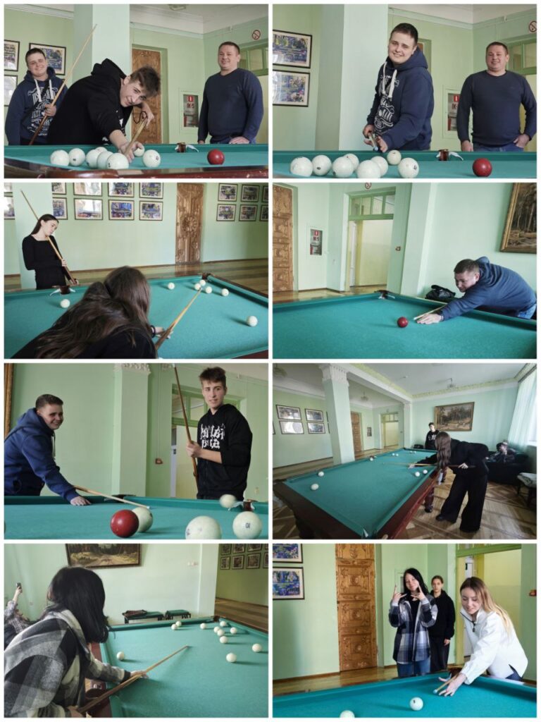 ✅03.04.2025г. учащиеся колледжа вместе с преподавателем Алексиным Д.А. посетили ДК «Костюковка», где состоялась игра в бильярд. Как парни, так и девушки к игре подошли большим интересом.