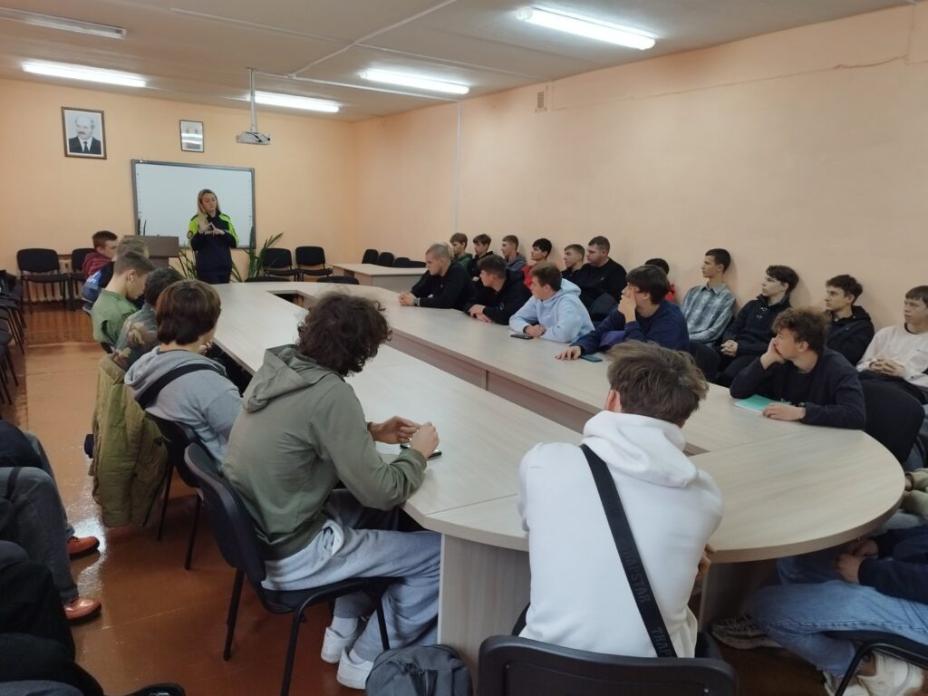 22.10.25 в нашем колледже прошла встреча с инспектором пропаганды и агитации УГАИ Гомельского облисполкома Шахленковой К.Д. В ходе встречи учащимся старших курсов — будущим водителям, была доведена информация о состоянии дорожно транспортных происшествий с участием их сверстников, а также о нововведениях в ПДД. В конце встречи инспектор ответил на интересующие ребят вопросы.