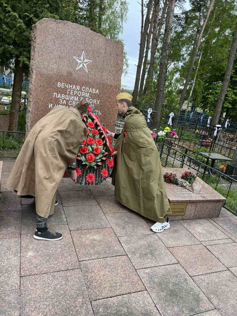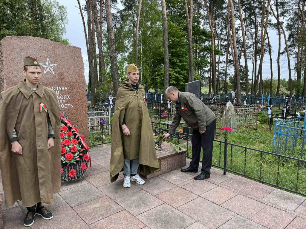 Учащиеся нашего колледжа, во главе с руководителем по военно-патриотическому воспитанию Осадчим В.Б., совместно с работниками ОАО «Гомельстекло», приняли участие в п. Большевик Гомельского р-на в возложении венков на могилу воинам, а также на «безымянную могилу матери и ребенка», погибших в ВОВ