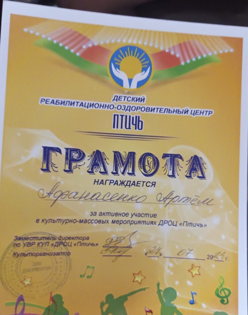 Незаметно пролетело время и нашим ребятам пришла пора возвращаться домой. Позади: более 20 дней проведённых в компании однокурсников, ровесников, 20 дней новых знакомств, встреч, больших побед и маленьких поражений, процедур , развлечений, подвигов, открытий … но главное- это бесценный опыт, новые друзья, и бесконечное множество позитивных эмоций ! Спасибо работникам центра за организацию мероприятий — с вами всегда интересно! Спасибо нашим сопровождающим Виктору Борисовичу и Зинаиде Васильевне, за то , что всегда с нами! Спасибо всем, кто принимал участие в организации нашего отдыха! Наше лето — лучшее!