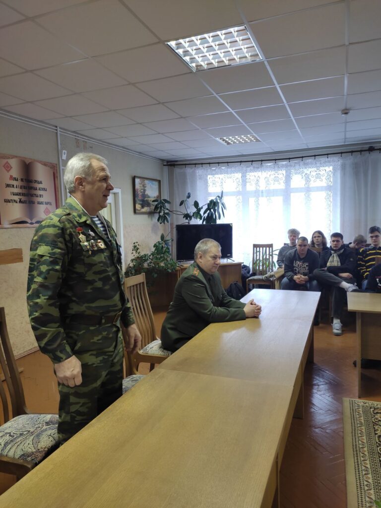 12.02.2024 состоялась очередная патриотическая встреча с воином-интернационалистом, членом Постоянной комиссии по национальной безопасности, в постоянно действующих делегациях в межпарламентских организациях, межпарламентских комиссиях, рабочих группах Национального собрания Республики Беларусь по сотрудничеству с парламентами иностранных государств, Александром Михайловичем Данченко. В ходе встречи воин-интернационалист рассказал ребятам о нелегкой службе в республике Афганистан, о необходимости постоянного морального и физического развития, привития любви к Родине и, в случае необходимости, умение защитить себя и своих близких.